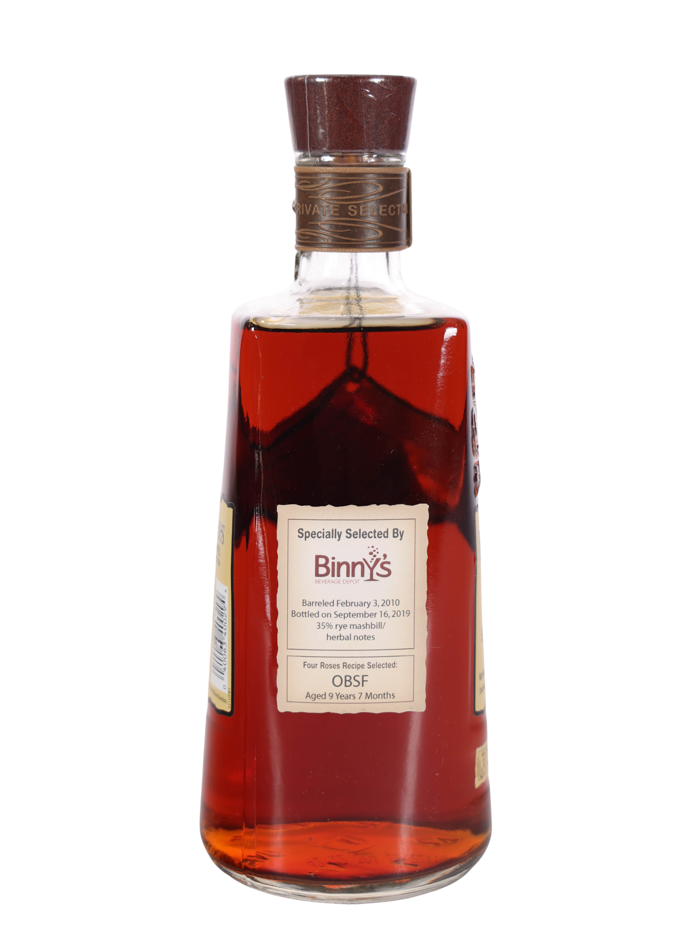 Four Roses OBSF 9y 7m "Binny's" 126.8p (2019) - Four Roses 9 Year Bourbon Bottle