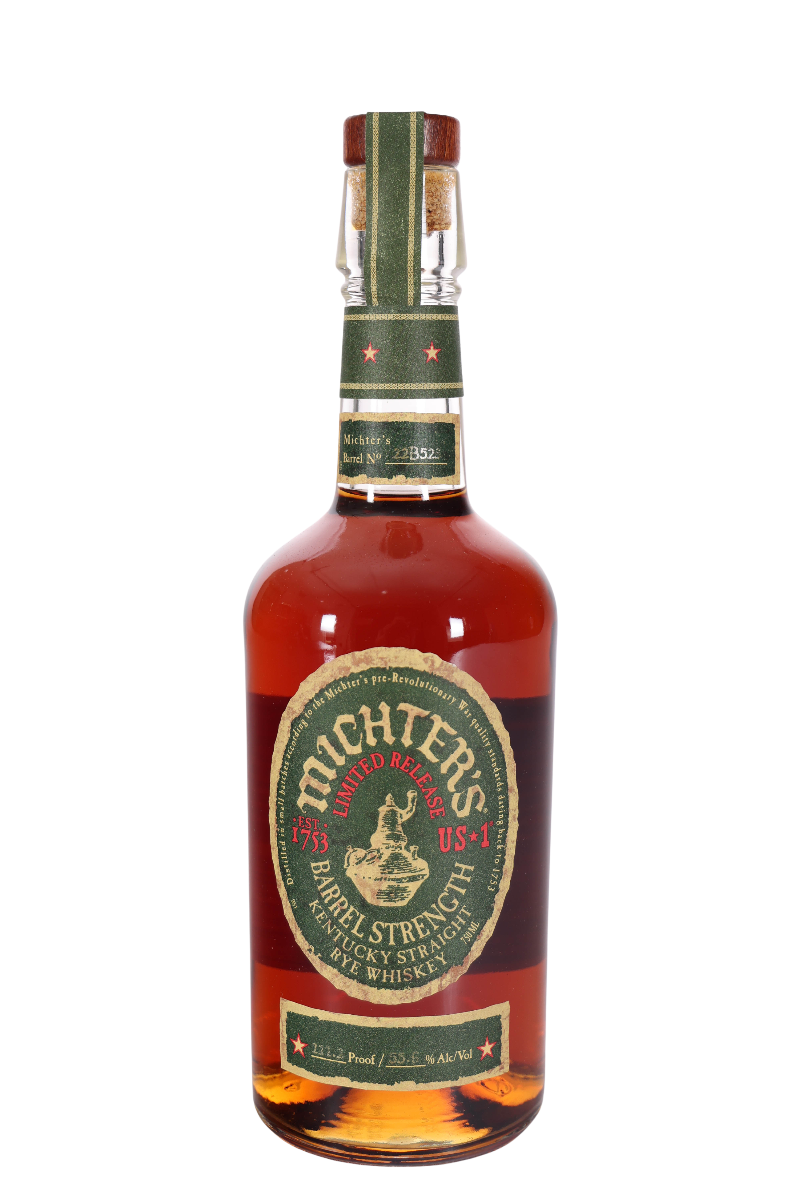 Michter’s Barrel Strength Rye (2022) continues a legacy that traces its roots back to America’s earliest whiskey makers. The Michter’s name first appeared in Pennsylvania in the 18th century before relocating to Kentucky, where the brand revived its heritage with small-batch releases. The 2022 Barrel Strength Rye, bottled at 111.2 proof, highlights Michter’s ongoing pursuit of excellence in rye whiskey. Each release is carefully selected from single barrels, offering collectors and enthusiasts a unique expression that’s never blended or diluted. The bottle’s classic green and gold labeling nods to Michter’s historic aesthetic, echoing the brand’s enduring status among American whiskey icons. For those seeking a modern collectible with deep historical roots, Michter’s Barrel Strength Rye stands out as a remarkable entry in the distillery’s acclaimed annual lineup.
