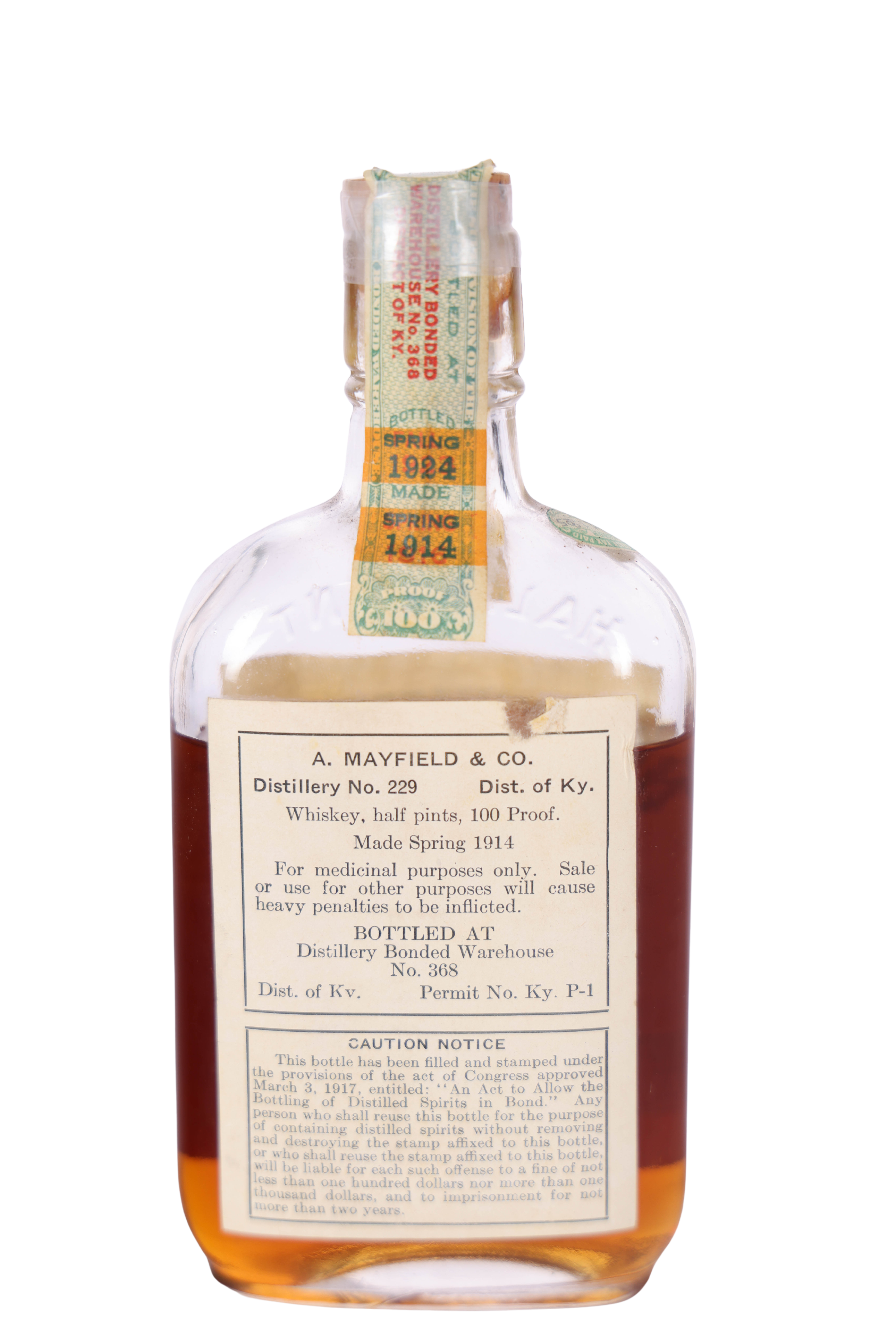 Half Pint, 10 year old, 100 proof. Prohibition Era.