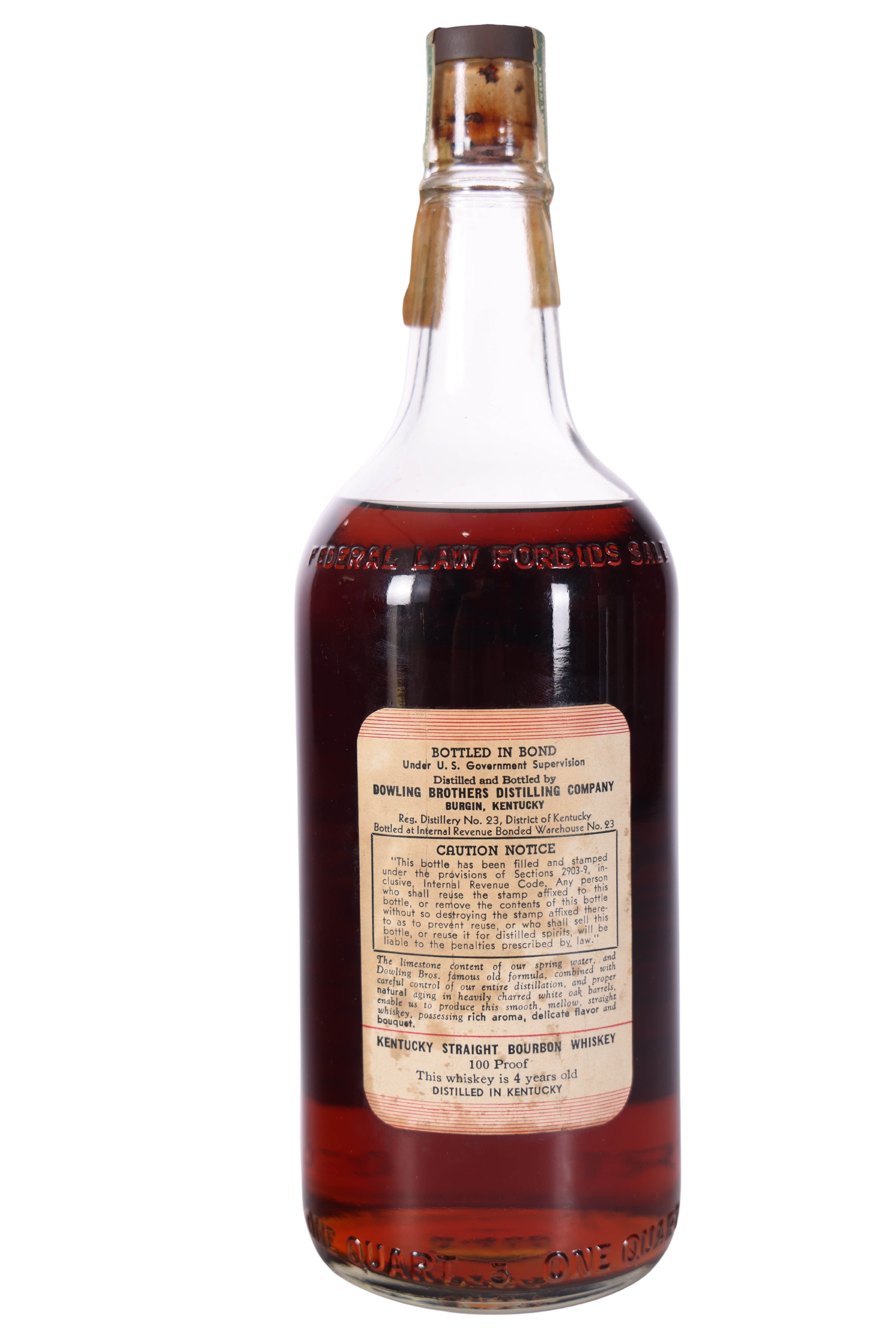 Dowling 'Double Springs' 4 Year Bottled in Bond 1940-1944 (Quart)