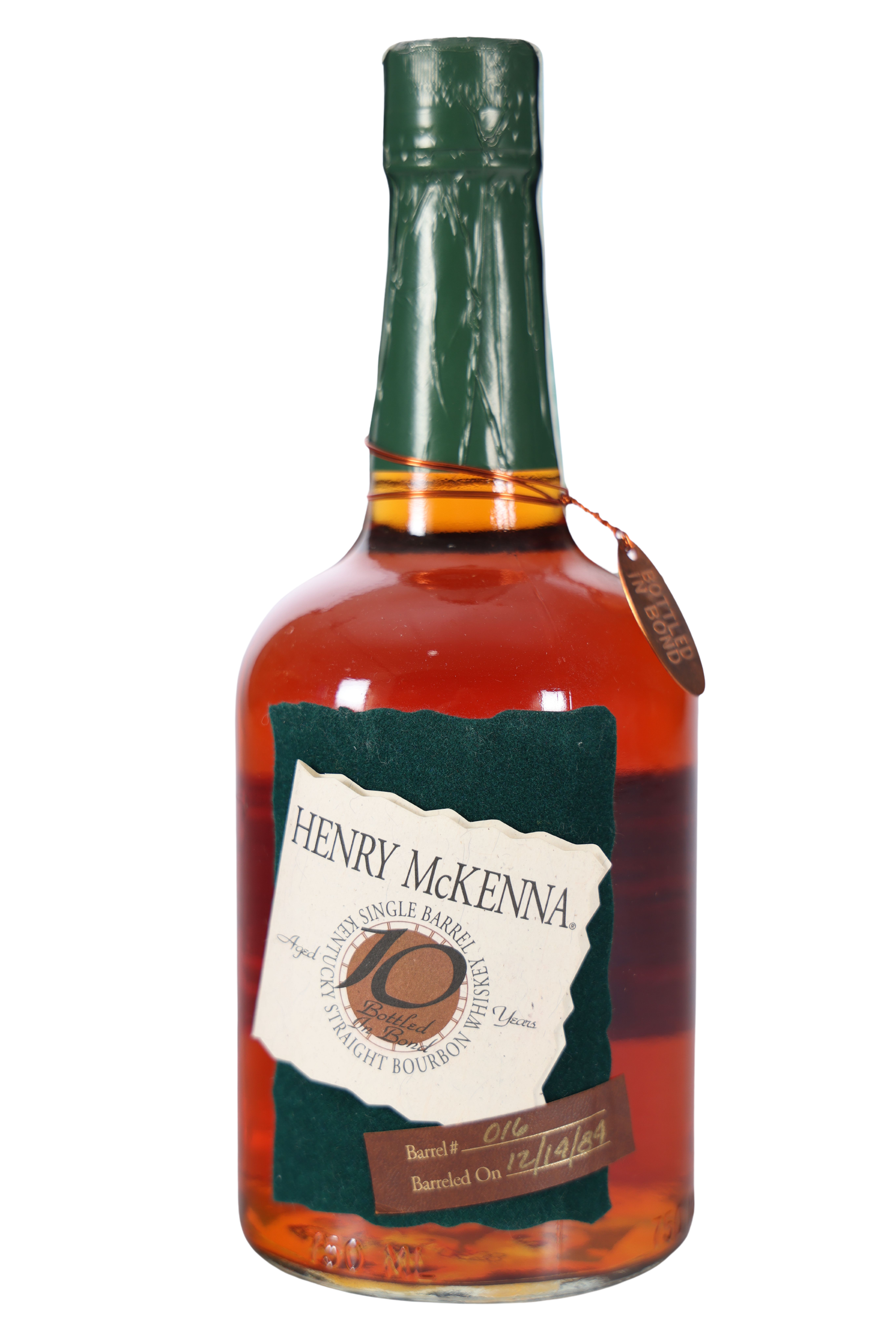 The very first relase of Henry Mckenna 10yr Single Barrel. Barreled 12/14/1984. 100 proof. Very good condition.