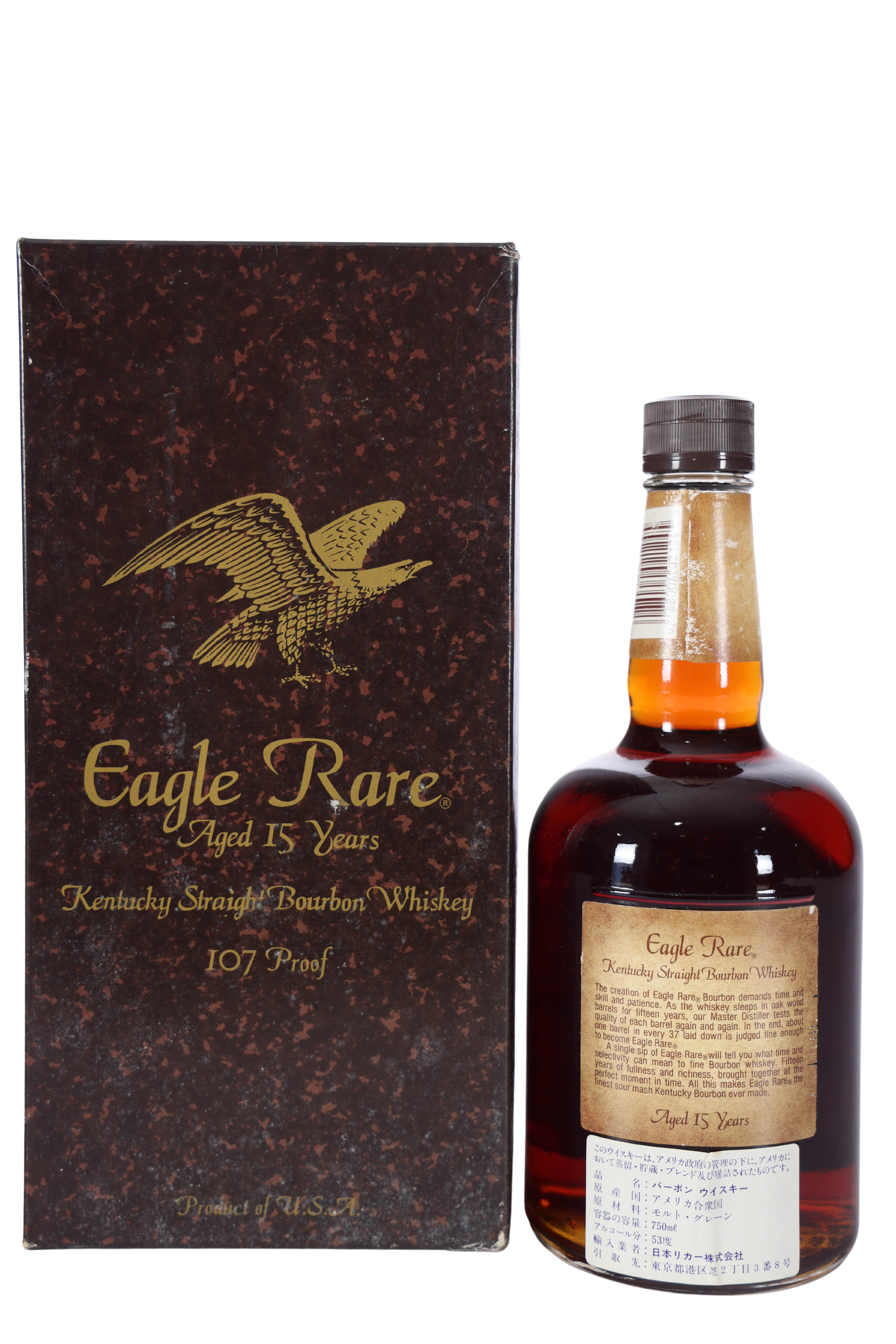 Rare, 15yr 107pf bottling of Eagle Rare. Bottled shortly after Sazerac acquired the brand and exported to Japan. The source of the bourbon is up for debate but Chuck Cowdery has stated he believed it was most likely Heaven Hill.