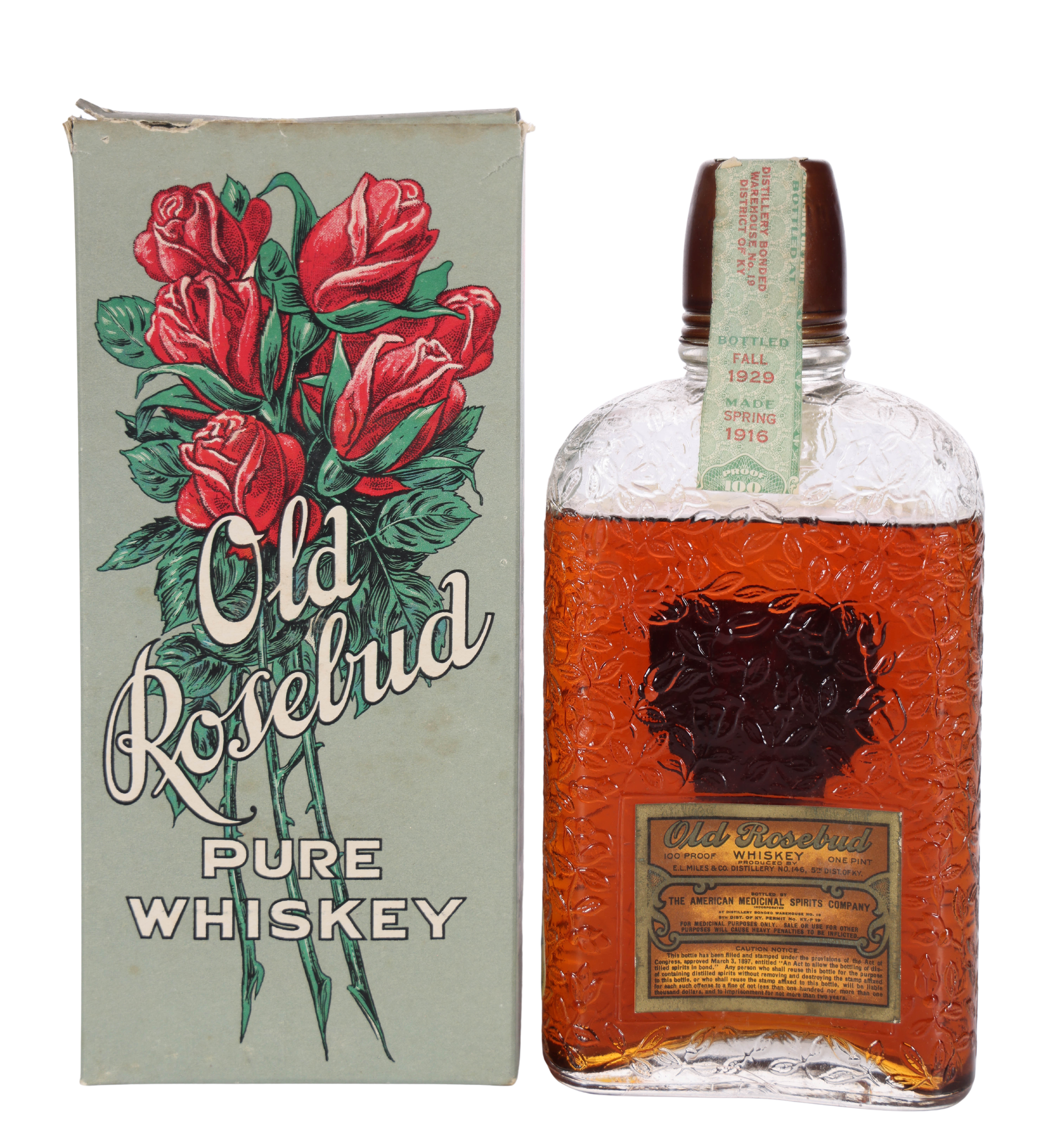 A.M.S. Co. Old Rosebud Bottled in Bond Pint (1916-1929)