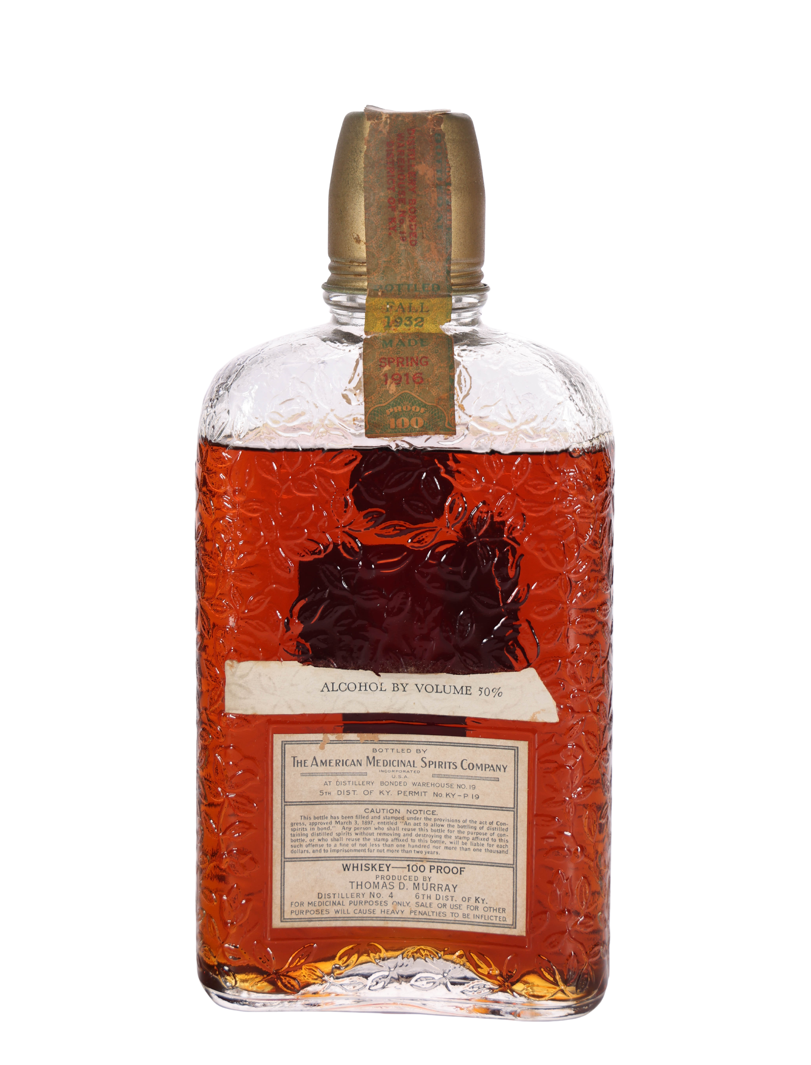 A.M.S. Co. 'Personality' Kentucky Whiskey, Bottled in Bond, Pint (1916-1932)