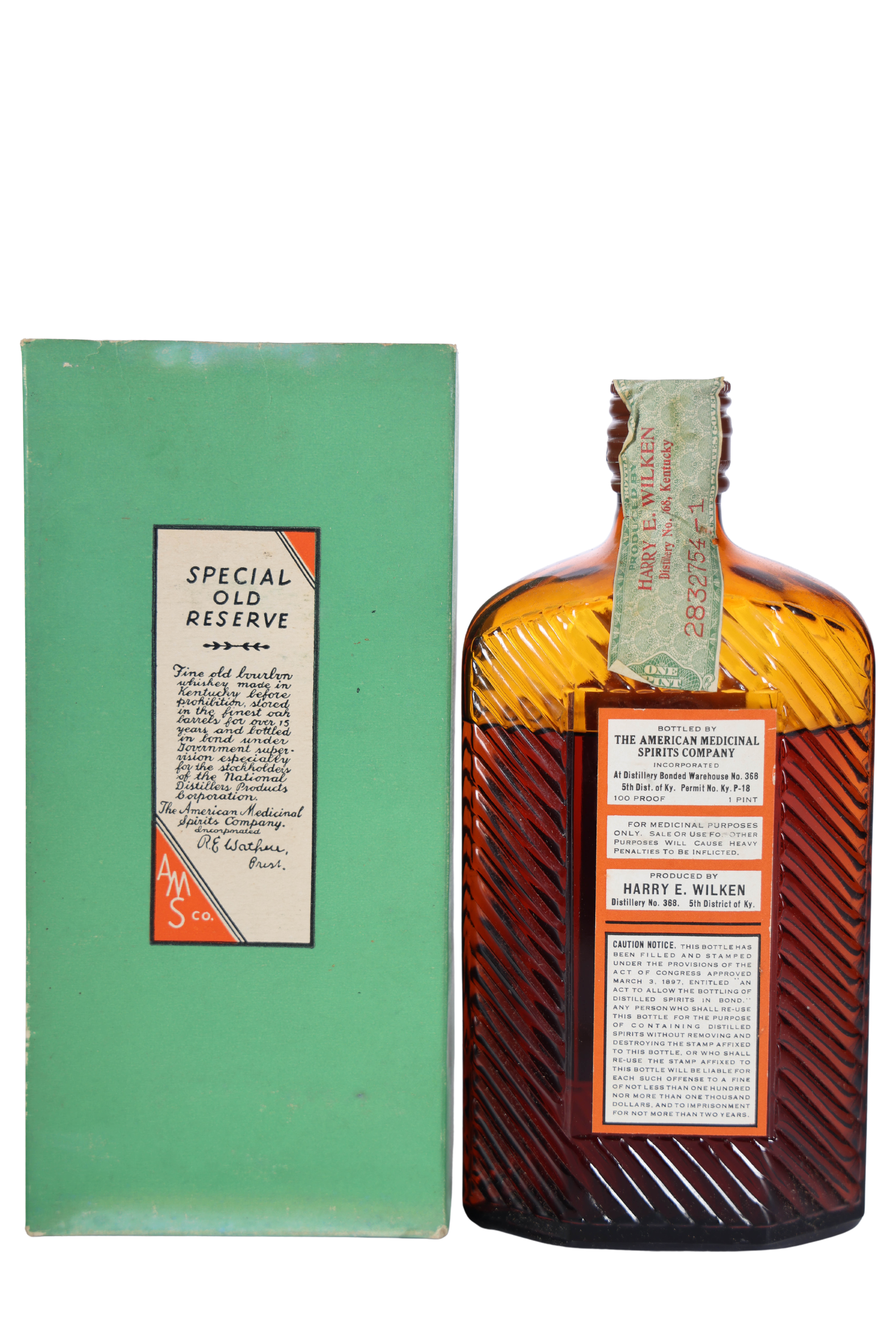 A.M.S. Co. 'Special Old Reserve' Bottled in Bond Pint, (1917-1932)