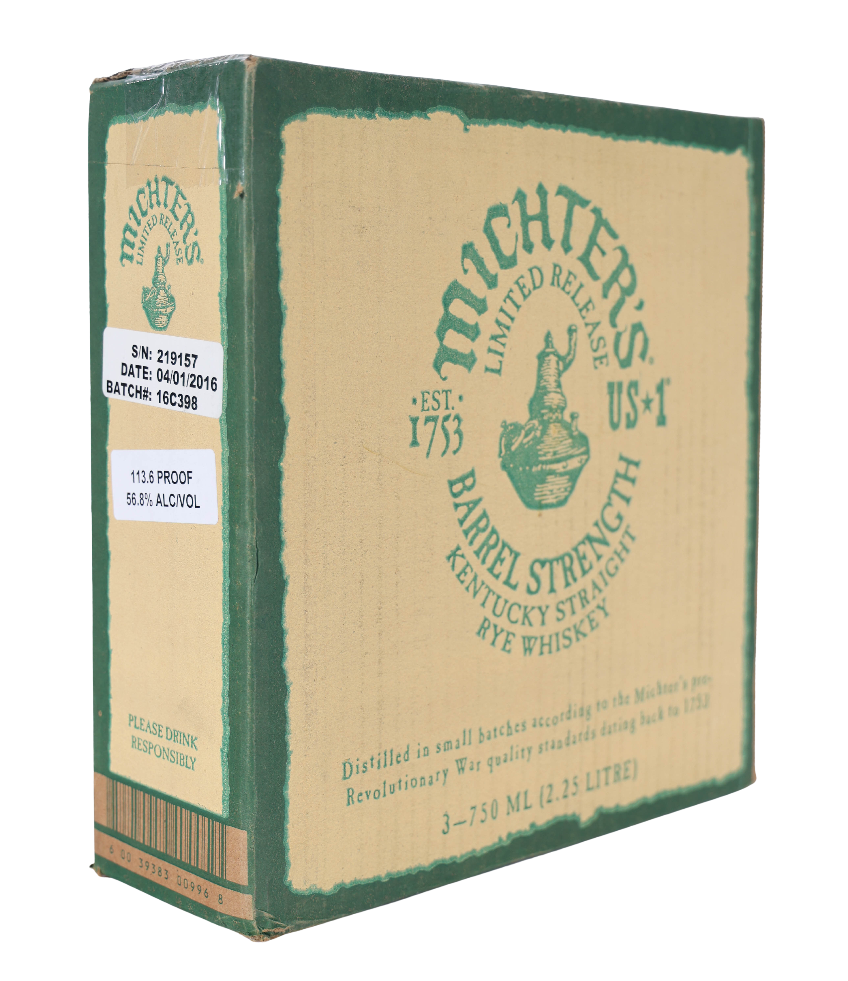 Michter's Barrel Strength Rye Whiskey 3-pack OCB Batch #16C398 (2016)