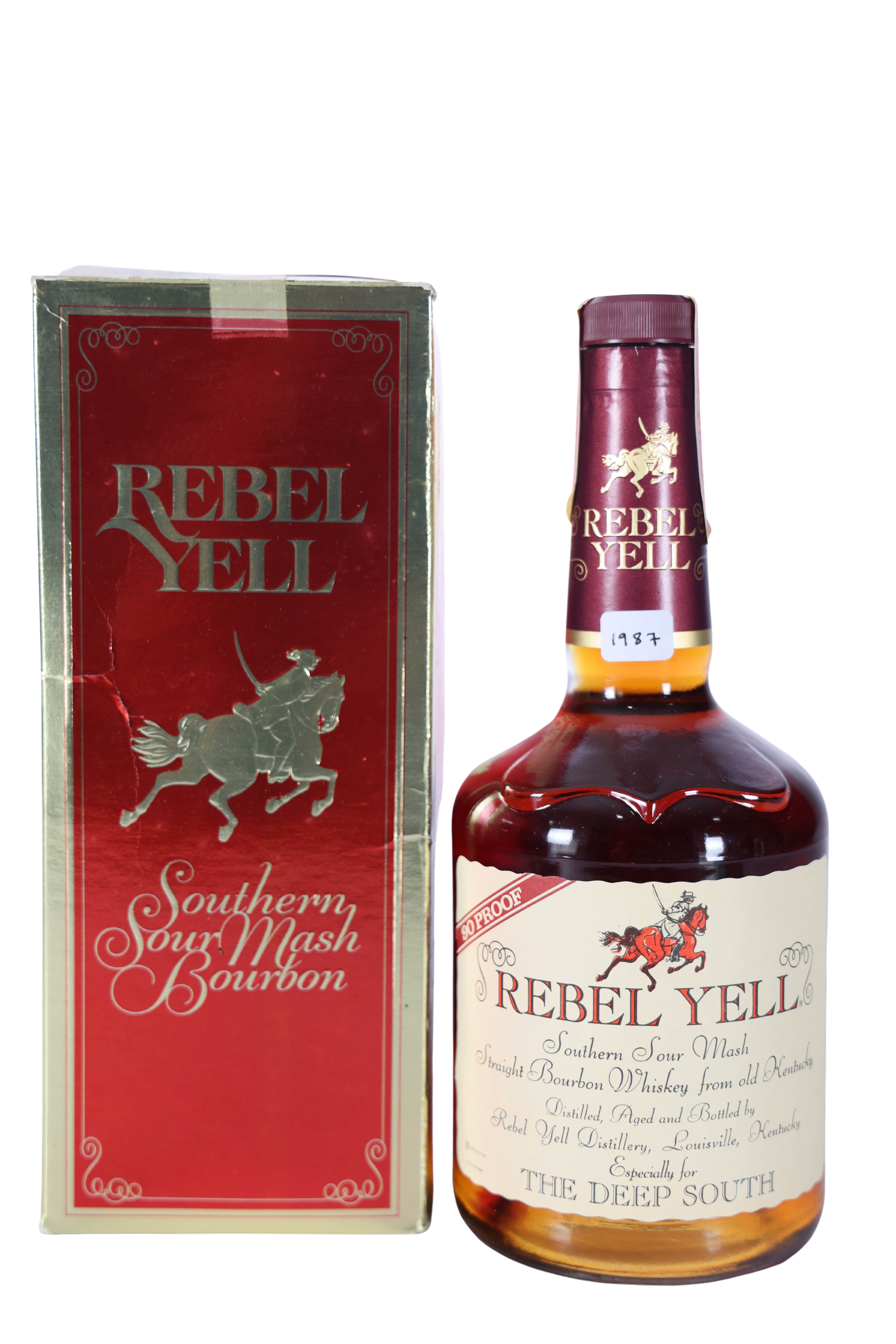 Pristine bottle of Rebel Yell from 1987. 100% Stitzel-Weller Distillate. Comes w/box