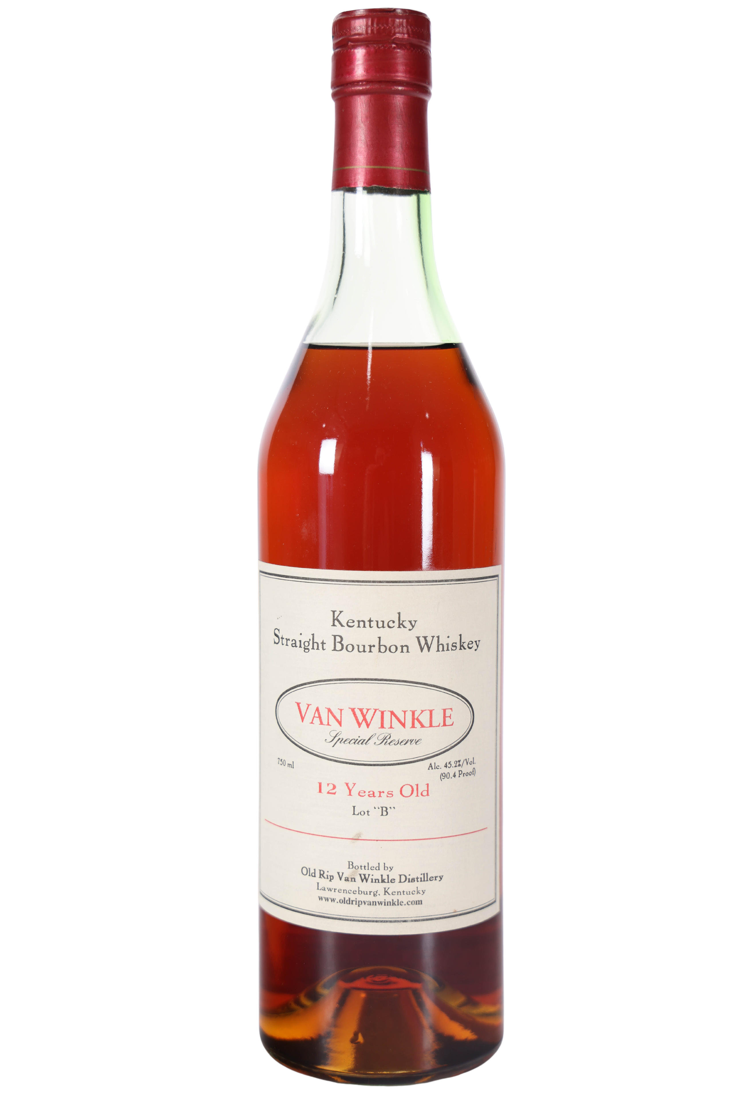 Van Winkle Special Reserve "Lot B" bottled in Lawrenceburg is a highly sought-after 12-year-old, 90.4-proof wheated bourbon, with early releases (starting in 1991) produced by Julian Van Winkle III at the Old Commonwealth distillery. These bottles often contained Stitzel-Weller distillate. It is known for a rich, sweet profile with notes of caramel and oak.