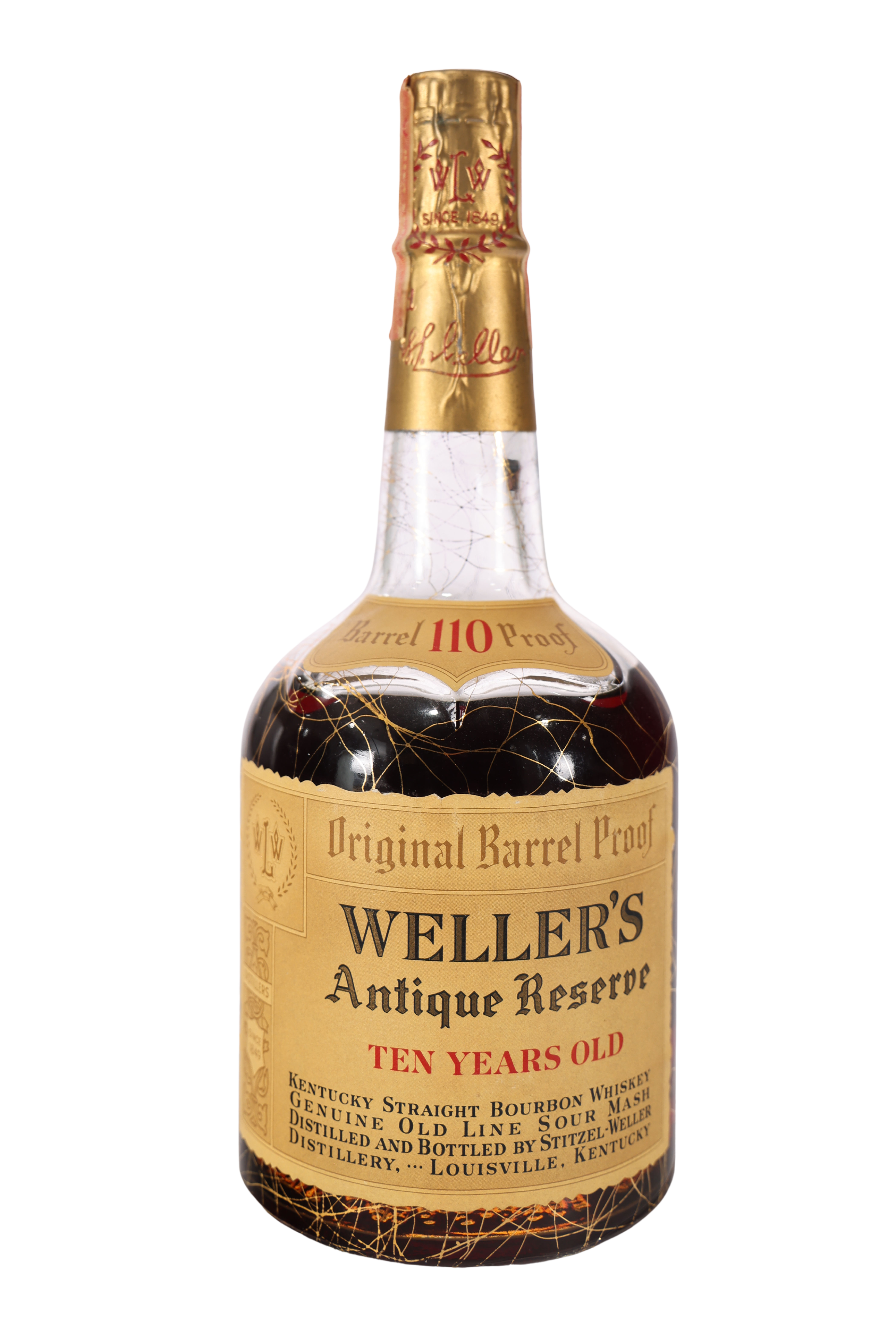 Weller's Antique Reserve 10 Year Original Barrel Proof is a celebrated expression from the storied Stitzel-Weller Distillery, a name synonymous with bourbon heritage. Established in 1935, Stitzel-Weller has long been a beacon of quality in the whiskey world. This particular bottle embodies the distillery's commitment to producing premium bourbon, aged for a decade to allow for a deep development of character. The Antique Reserve is bottled at a notable 110 proof, offering a powerful experience that reflects its bold lineage. Collectors and enthusiasts alike seek out this expression for its rich history and connection to the golden era of bourbon production. As a part of the Weller family, this whiskey is often regarded as a staple for those who appreciate the finer aspects of Kentucky bourbon. Its legacy continues to resonate among both casual drinkers and connoisseurs, making it a prized addition to any collection.