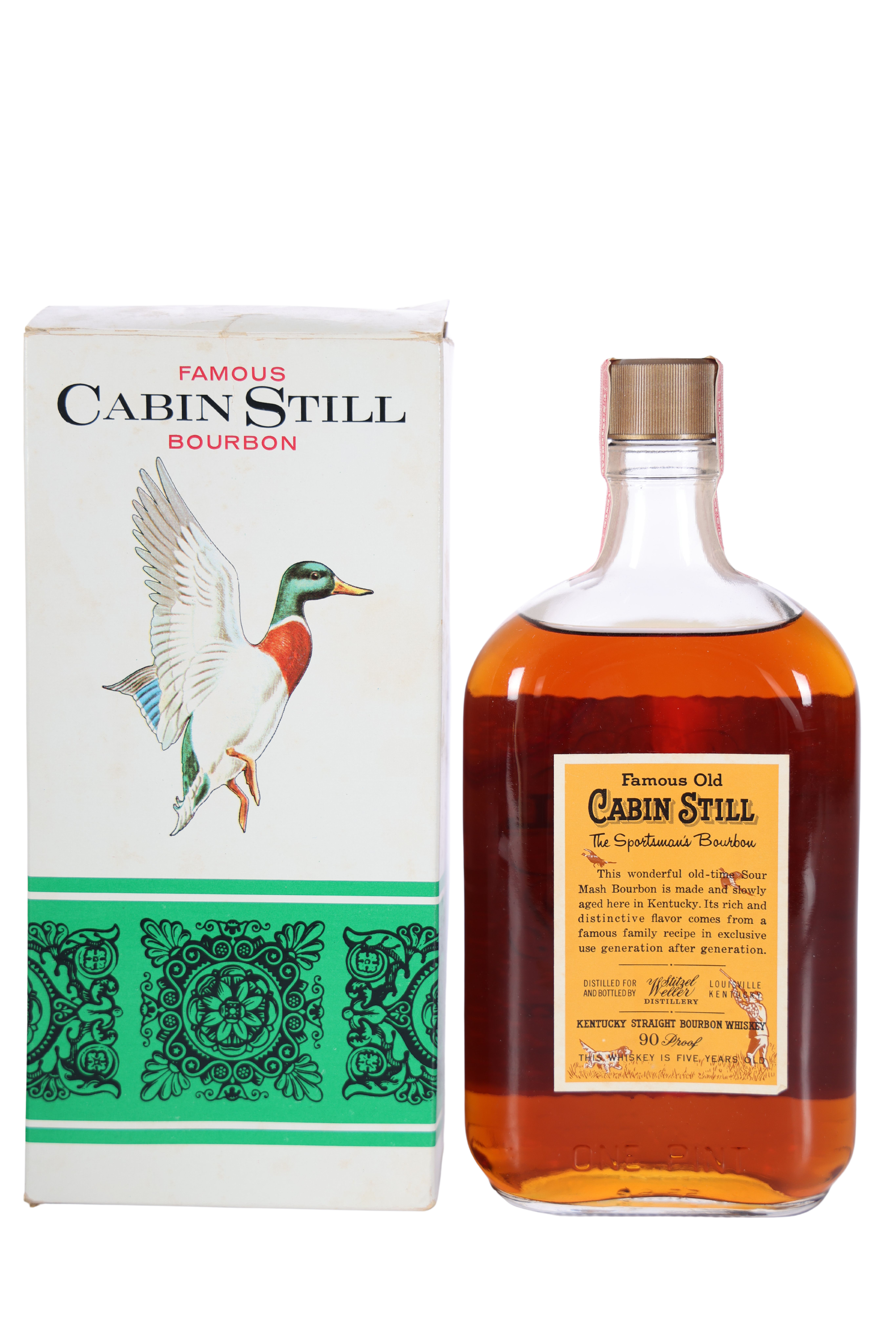 Gorgeous little Cabin Still Ducks Unlimited pint bottle w/box from the shuttered Stitzel-Weller Distillery. 5 years old.